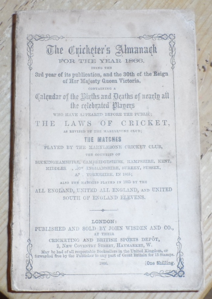 My current 1866 Wisden is a Paperback in very nice condition, it cost me £9,000 in 2014.