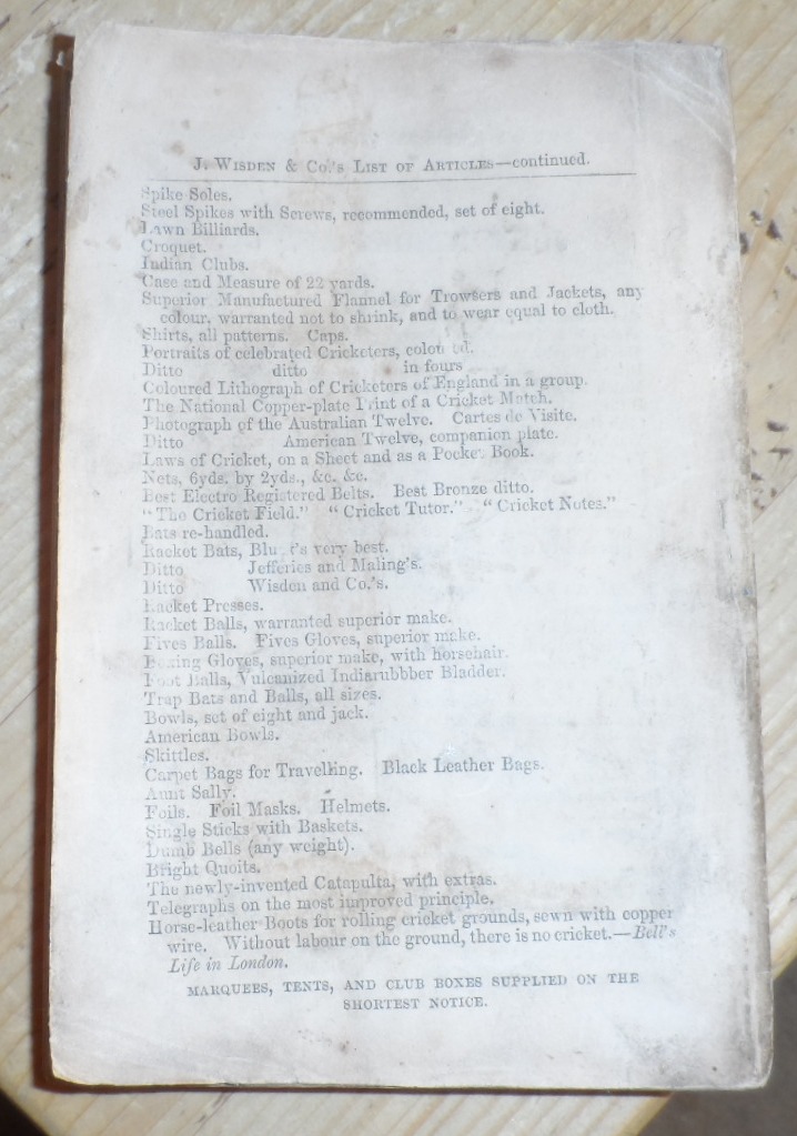 1866 Wisden - 3rd Edition - Rebind , Rear Page (Not in my Set)
