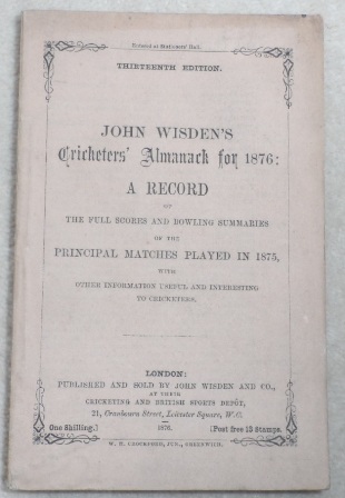 | | 1876 Original Paperback Wisden. No Front Cover. | £1,490.00 | ||